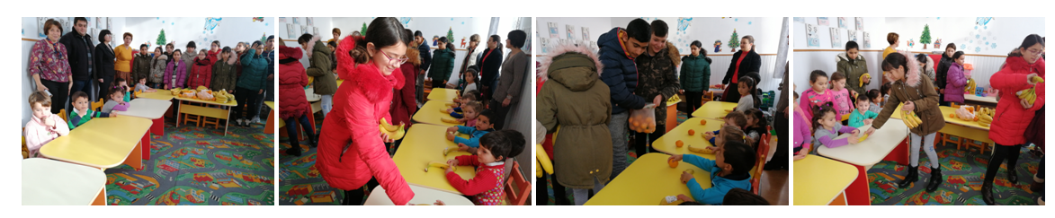 Cei mici i-au primit cu bucurie pe elevii nostri și le-au mulțumit pentru fructele primite.